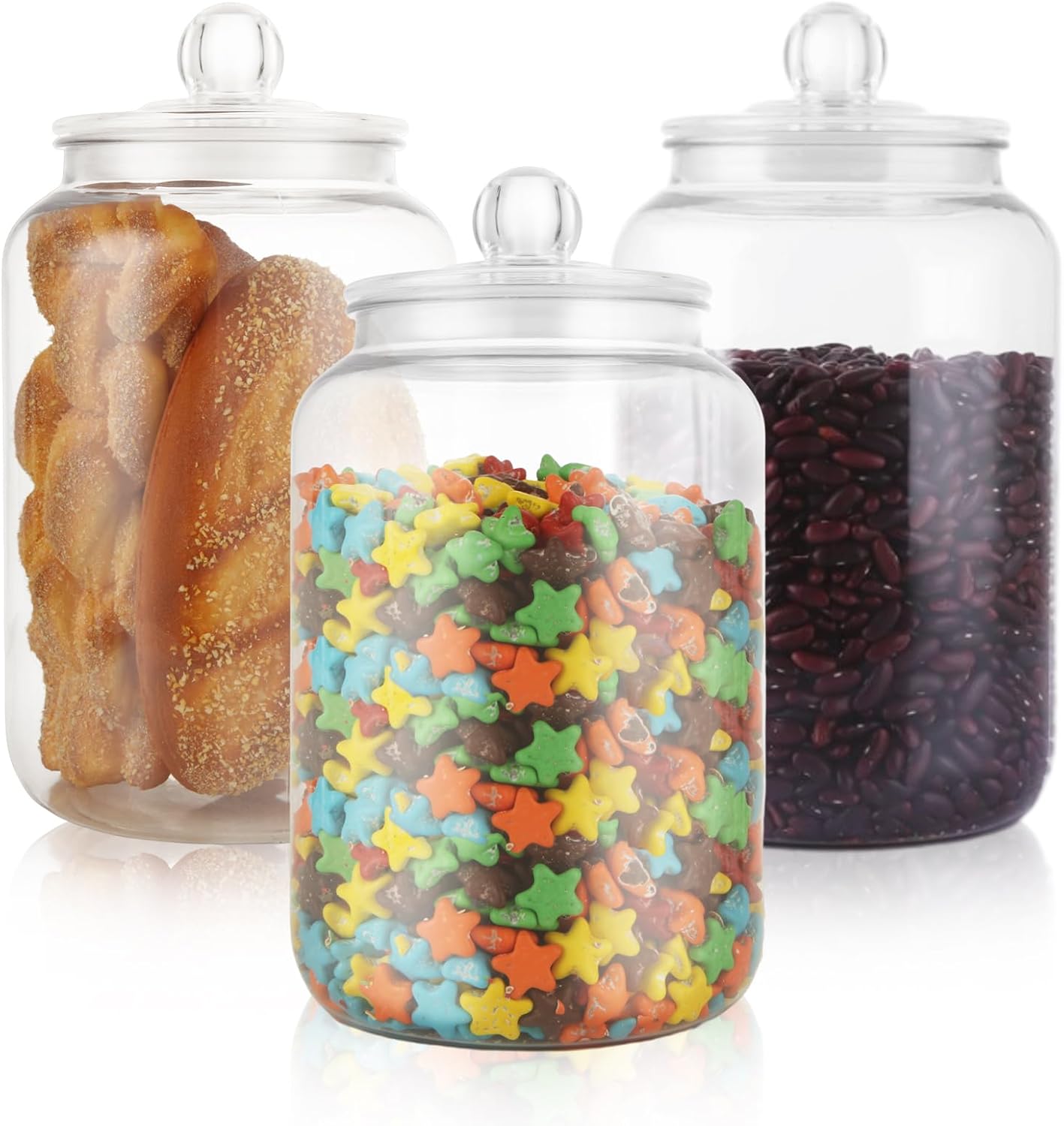 - Large Size and Capacity: These candy jars with lids are generously sized, measuring approximately 5.9 inches/ 15 cm in bottom diameter and 10.6 inches/ 27 cm in height. With a capacity of about 128 oz/ 1 gallon, they provide ample space to store and display a wide variety of candies, ensuring you have enough treats for many occasions.
