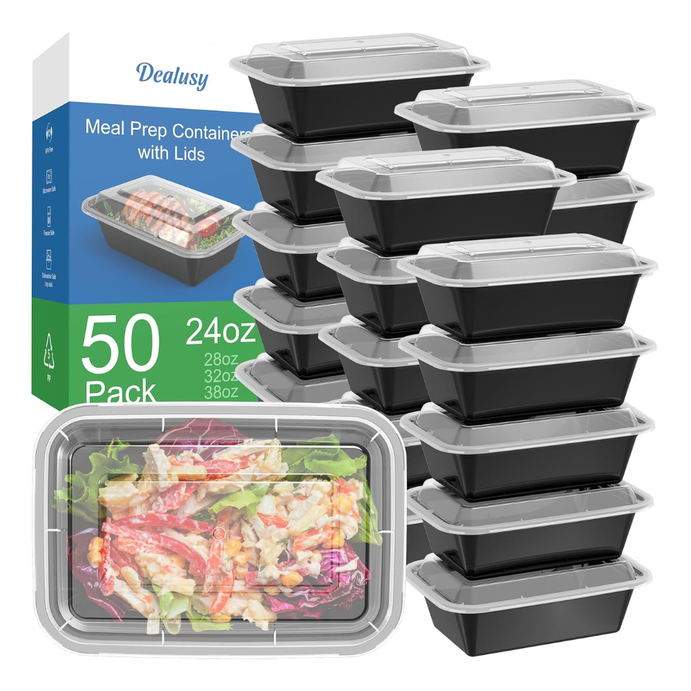 50 Pack (100-Piece) 24 oz Meal Prep Containers Reusable with Lids