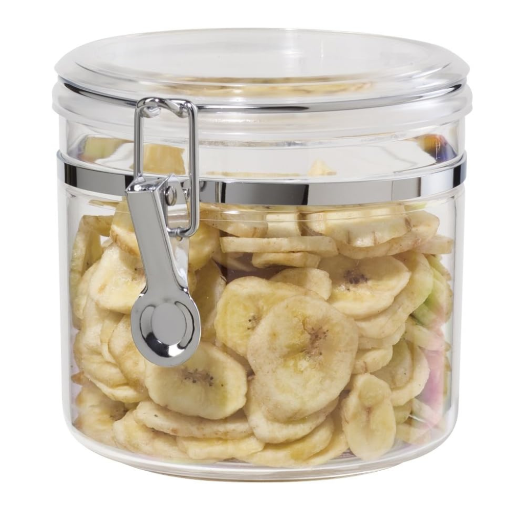 - STYLISH PANTRY STORAGE AND KITCHEN COUNTER ORGANIZATION: Classic locking clamp design lends a hint of the rustic farmhouse yet with modern practicality. With its round and stackable design this airtight food storage container will look cute on your shelf or counter.