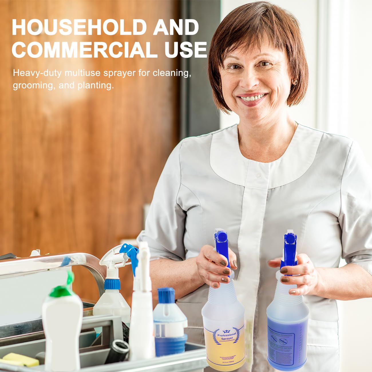 - HOUSEHOLD-COMMERCIAL-INDUSTRIAL USES – Our plastic spray bottles is for multi purpose uses, each bottle is BPA-free, use them for food spraying, cleaning solutions around the house, pet, cat, lawn and garden, misting and watering plants, bleach spray, succulents, herbs, ironing, laundry, car cleaning, janitorial. Make your own homemade diy cleaner mister or just use with water to cool yourself.