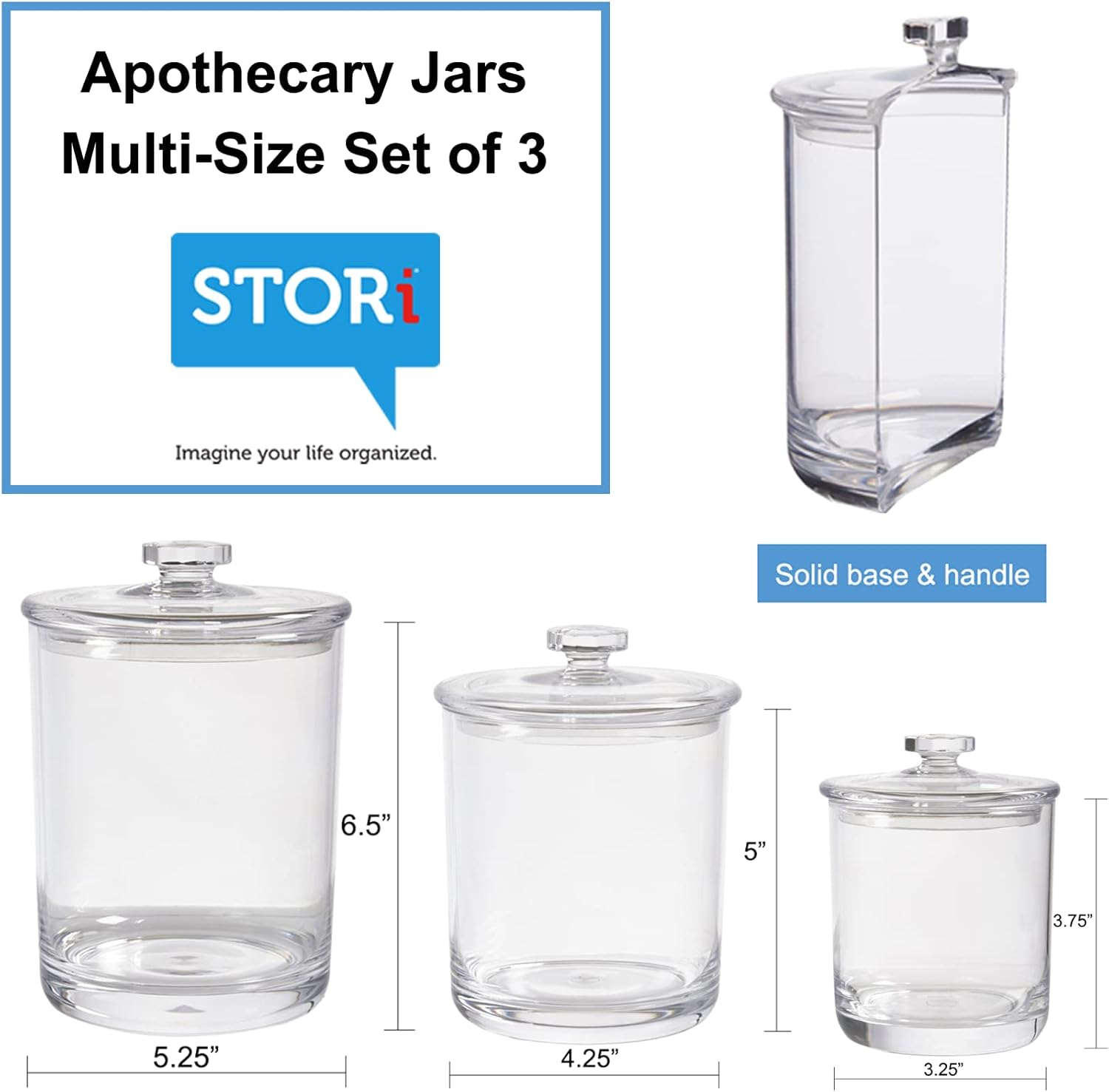 STORi 3-Pack Premium Quality Clear Plastic Qtip and Cotton Ball Holders
