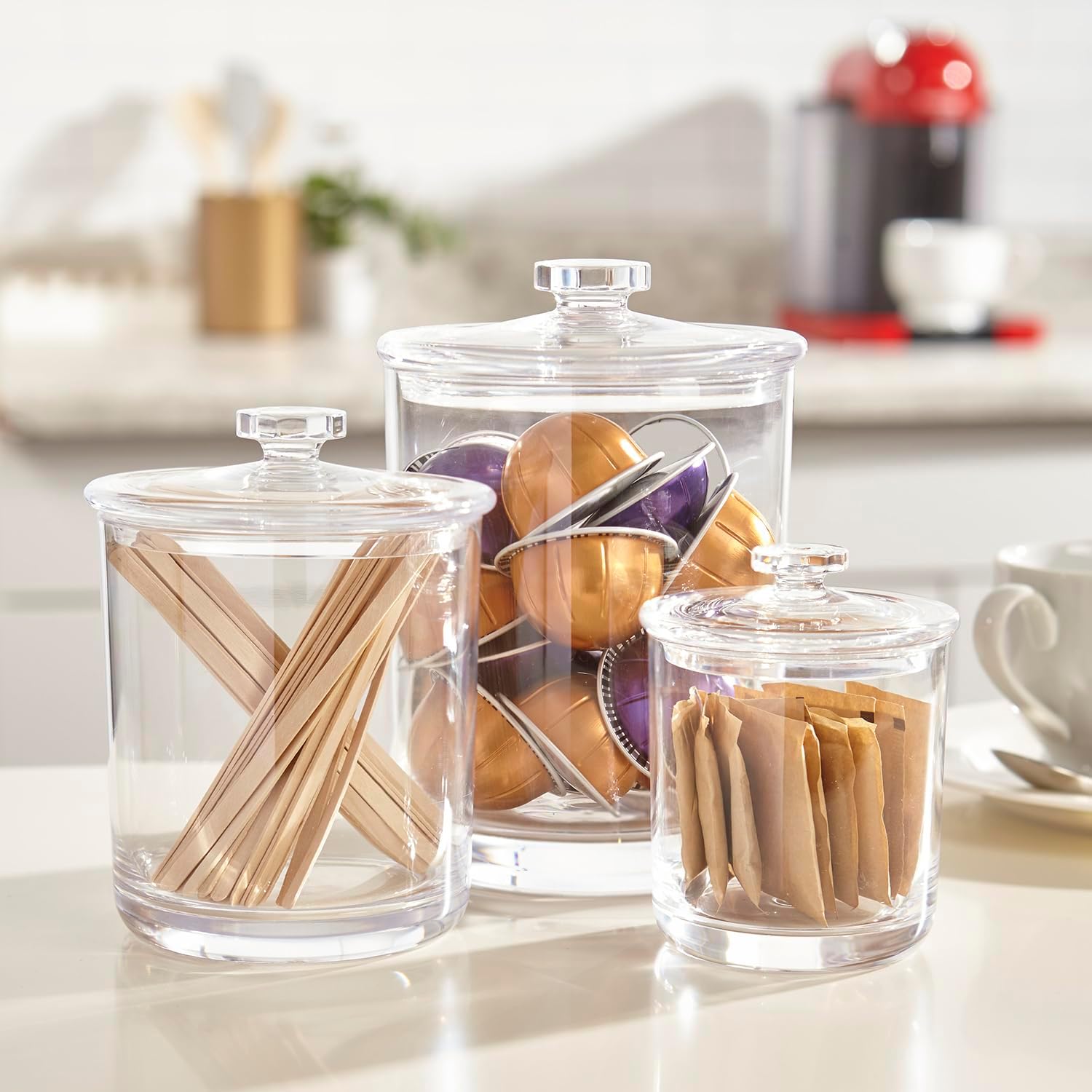 - Glass-like Feel Without the Risk of Shattering: Crafted from high-quality acrylic plastic, these jars mimic the look and feel of glass but eliminate the risk of shattering. You can enjoy the elegance of glassware without worrying about accidents, making them safe for use in bathrooms, kitchens, and around the house.